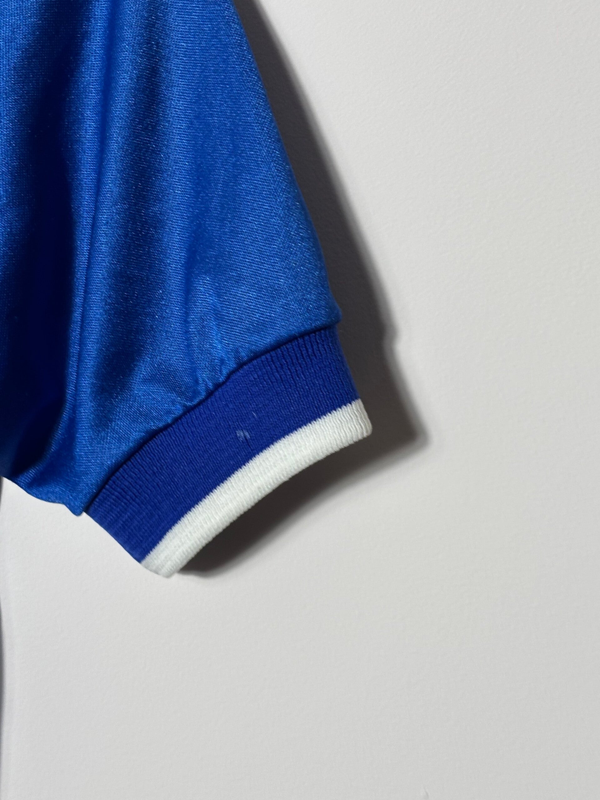 Condition: Good. No major defects. Has the odd stain as pictured. Colour is superb. The sponsor is slightly discoloured and the badges are in great condition.